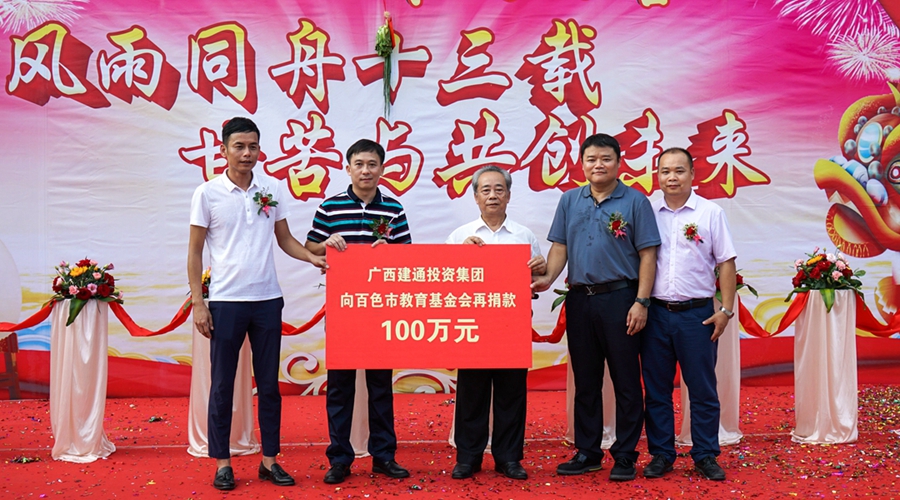 9月23日,是集团百色总部乔迁庆典仪式的大喜日子,集团做出了再次向百色市教育基金会捐款100万元的感人之举,用于资助乐业县高中50名家庭经济困难学生完成学业,并为这个班级取了一个非常响亮的名字:乐业县高中建通助学班。这是米兰官方站网页版用自己的实际行动再次向社会回馈感恩、传递能量,就让这50名学生在集团发展春风的沐浴下,扎实学业、积极向上,将感恩传递,将爱延续。